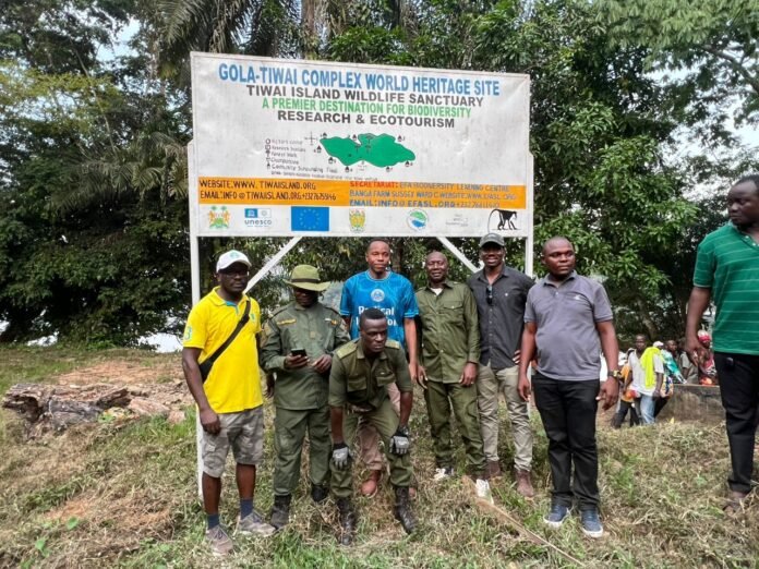 The delegation was taken on a guided tour by Mohamed B. Koroma, widely known as “Mediwa,” a lead forest guard at Tiwai. He provided historical and ecological insights into the sanctuary, explaining that the Tiwai highlands constitute a unique natural ecosystem shaped by the Moa River, spanning Barri and Koya Chiefdoms. He noted that the area, once used for farming over four decades ago, was transformed into a conservation site following the intervention of John Oates in 1979. Oates’ engagement with local communities helped initiate awareness and efforts to curb illegal activities while promoting environmental protection.